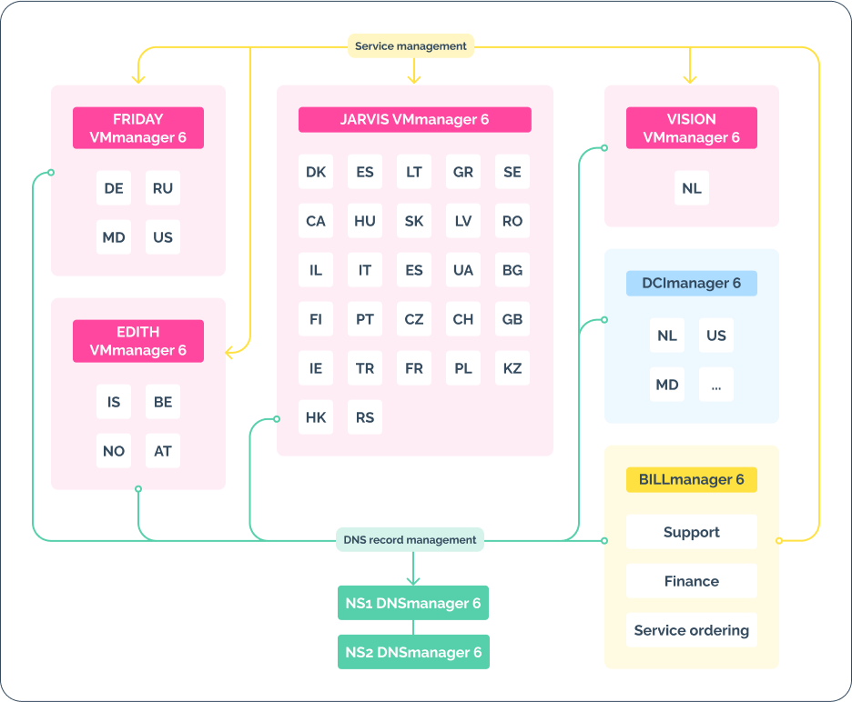 ISPsystem ecosystem is used for provisioning of full-cycle hosting services and IT infrastructure management in the project.